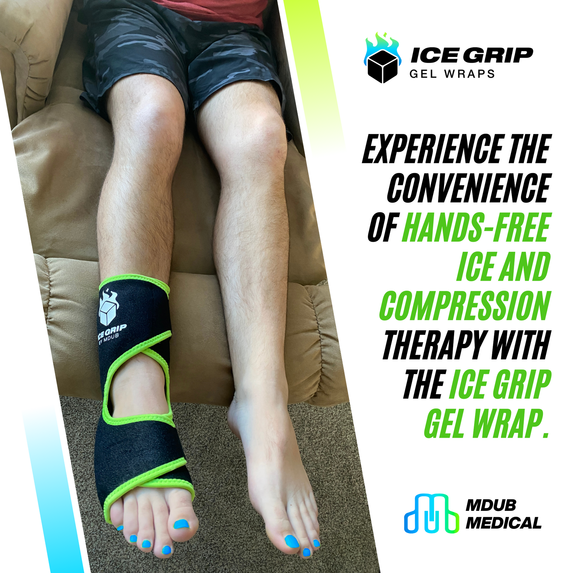 - Ice Grip Gel Ice Pack Wrap for Ankle and Foot: Designed specifically for faster recovery, soothing soreness, relieving injuries, and addressing sprains, the Ice Grip gel ice pack wrap offers targeted cold therapy to alleviate discomfort. Its flexible composition molds perfectly to your ankle and foot, effectively easing arthritis, ankle sprains, twists, and foot injuries, promoting healing and relief.