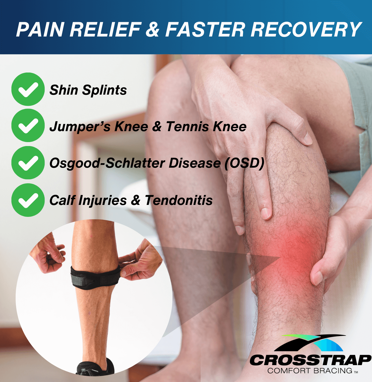PATENTED CROSSTRAP DESIGN: This unique Crosstrap technology means more localized pressure to the problem area. A slit on the side of the strap allows for more adjustability, letting you put pressure exactly where your body needs it. The Crosstrap helps with strains, sprains, and shin splint management.