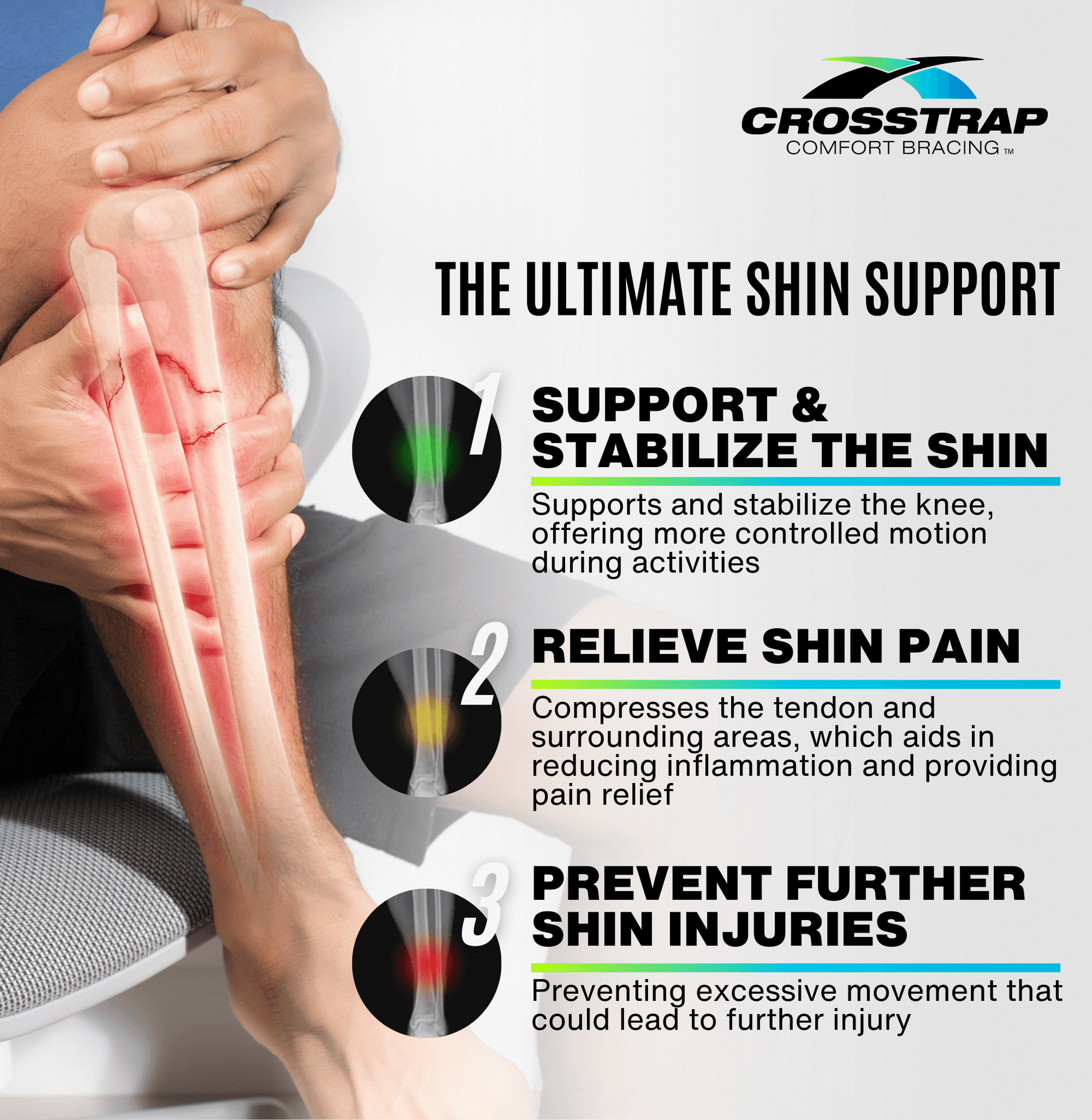 The shin support is designed to alleviate pain and discomfort caused by shin splints, sprains, or injury.